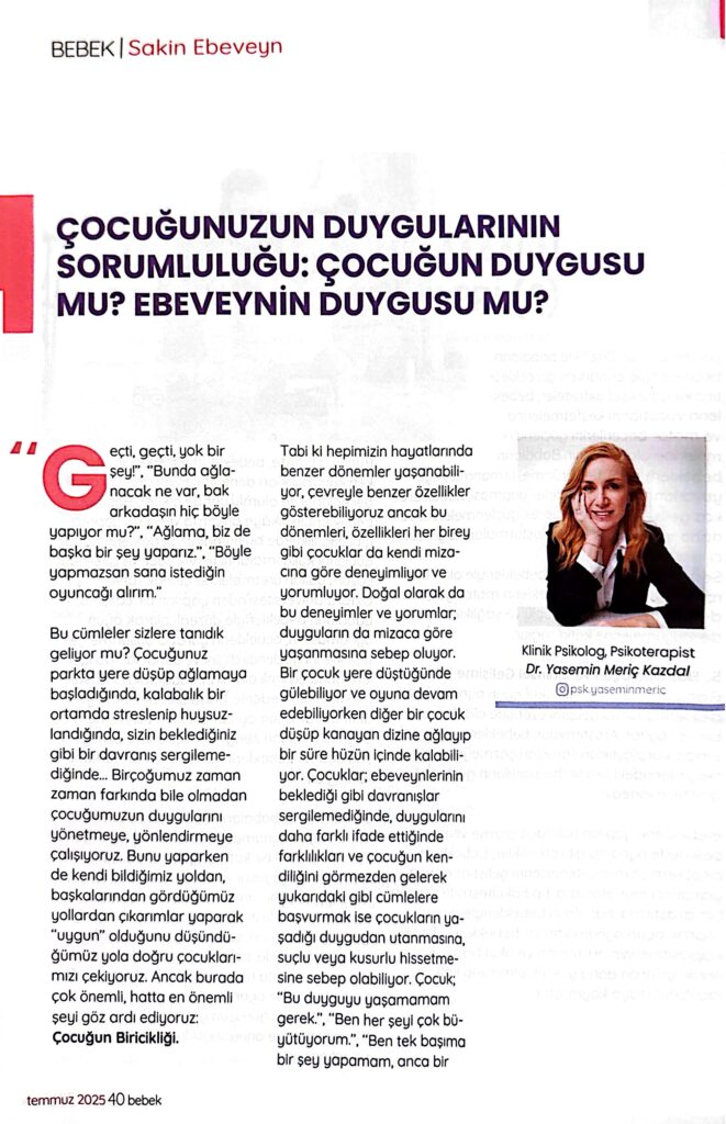 Dr. Yasemin MERİÇ KAZDAL, Klinik Psikolog